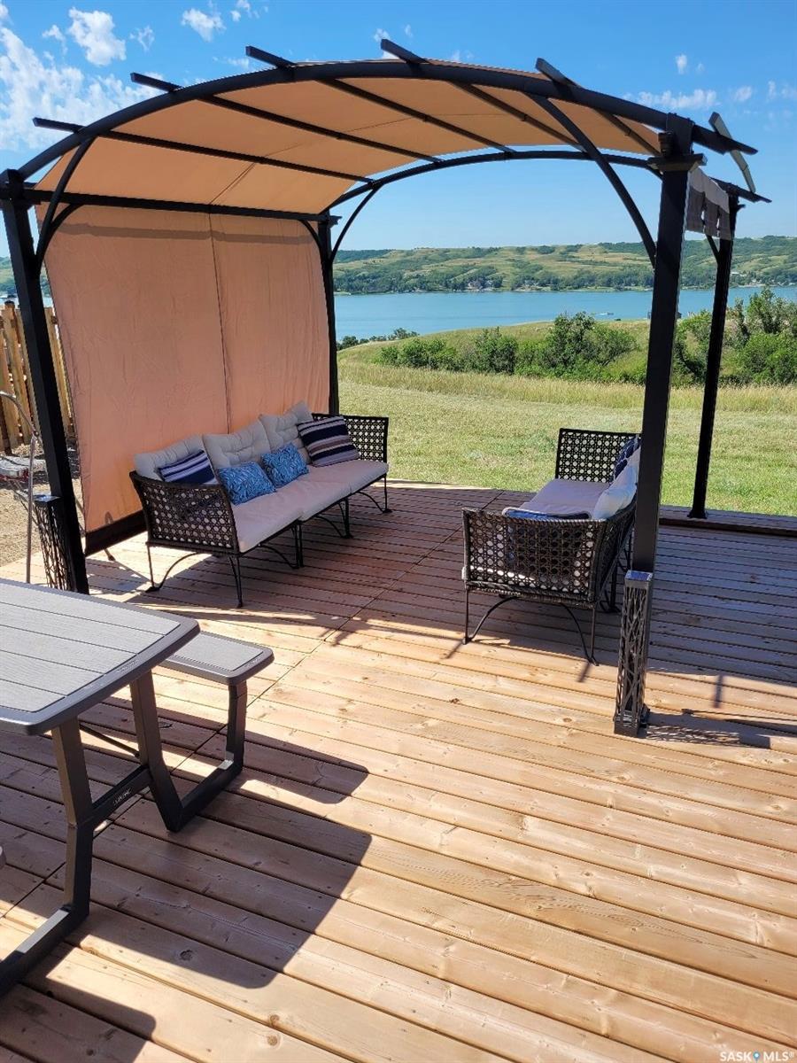 Welcome to a little piece of Saskatchewan paradise! Located on the North shore of Buffalo Pound Lake, this lot has exceptional views and is ready to go. There is access to the resort's private pool, and the bathroom and showers are just steps away. A bunkhouse for children or guests that sleeps 3 people comfortably means space for all. The pull through driveway is large enough to have a guest camper on the lot. Relax around the fire pit or on the pergola covered deck and watch the boats on the water and the fireworks every weekend. In the winter, there is a skating rink, and snowmobile trails. Get ready to make some great memories! Call today!