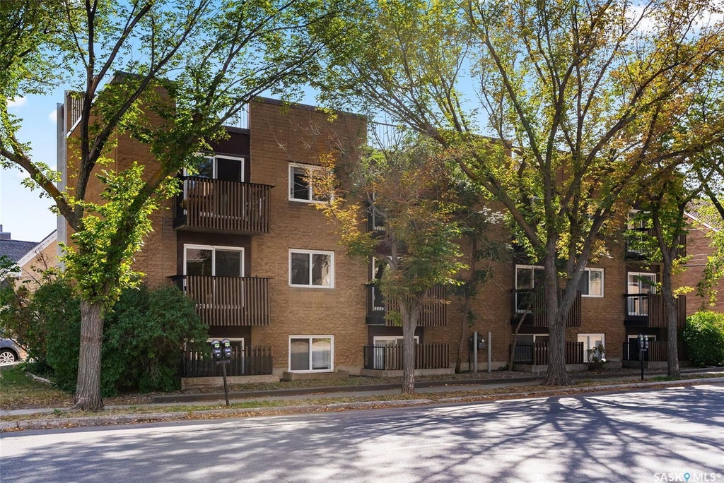 Beautifully remodelled top-floor, end unit located in a solid masonry building, providing excellent soundproofing. Ideally situated within walking distance to all Cathedral amenities, Wascana Park, and downtown Regina. This bright, north-facing condo features carbonized bamboo hardwood floors that flow through the entrance, kitchen, and living room. The kitchen is finished with cherry maple cabinets, crown mouldings, granite countertops, Travertine tile backsplash, a deep undermount sink, and a stainless steel appliance package. The spacious living room includes large patio doors leading to a private balcony, perfect for barbequing. The 4-piece bathroom offers ceramic tile flooring, a soaker tub with ceramic tile surround, and a modern marble-topped vanity. The bedroom is a good size with a bright north-facing window, newer closet doors, and updated carpet (2021). Shared laundry is located in the basement. Condo fees include heat, water, building insurance, exterior maintenance, one electrified parking stall, and reserve fund contribution.