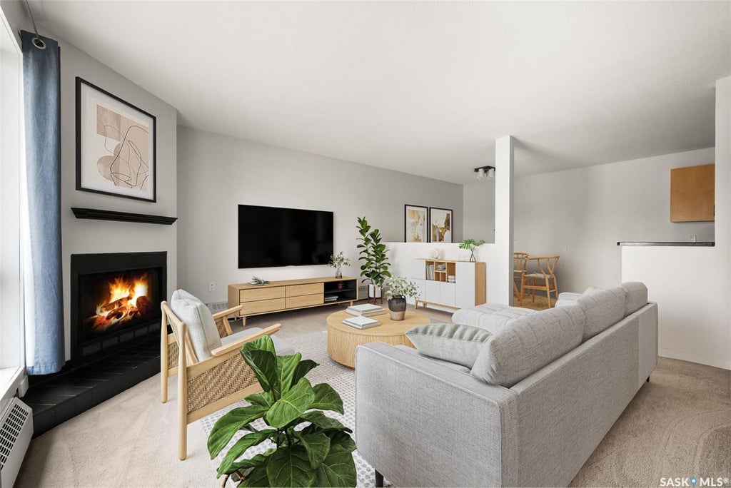 Welcome to this beautifully updated 2 bedroom, 1 bathroom condo located in the sought after East neighbourhood of Gardiner Heights. This inviting unit features fresh paint and updated flooring offering a modern, move in ready space perfect for first-time buyers, downsizers, or investors. Enjoy the convenience of in-suite laundry, a spacious 4 piece bathroom, and a functional layout designed for comfortable living. The bright and airy living area flows seamlessly into the kitchen and dining space, making it ideal for everyday living and entertaining. Step outside and take advantage of the well maintained common area, featuring a seasonal swimming pool and lush green space; perfect for relaxing or socializing with neighbours during the warmer months. The unit also includes one dedicated electrified parking stall, ensuring year round convenience. Located close to east end amenities, great schools, walking paths , and public transportation, this condo offers a fantastic combination of value, location, and lifestyle. Don’t miss your opportunity to own in this well managed complex in Gardiner Heights; book your private showing today!