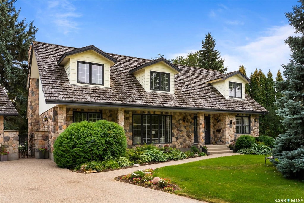 Rare and exceptional property in Regina’s Albert Park. Stately, custom-built home offers over 3,400 sq. ft. of living space on a 18,384 sq. ft. lot. Built on concrete piles, this residence is set in a private park-like setting at the south end of a treed boulevard, surrounded by mature landscaping, gardens, and an in-ground pool. Striking fieldstone exterior, aggregate driveway, and beautifully landscaped yard create impressive curb appeal. Inside, the home features 5 spacious bedrooms on the 2nd level, 4 bathrooms, and timeless design details, including a grand fieldstone fireplace, crown mouldings, and a richly appointed study with custom wood built-ins. Main floor offers a bright living room, formal dining room, sunlit kitchen with eating area, family room with wood-burning fireplace, and direct access to the backyard deck—perfect for entertaining. Upstairs, the primary suite includes a turreted sitting area, updated en suite with quartz vanity and tiled shower, and a serene view of the backyard. Four additional bedrooms and two more bathrooms complete the upper level. Fully developed basement provides excellent versatility with a games area, family/TV room with fireplace, large craft room, laundry, and abundant storage. Recent updates include 2 high-efficient furnaces (2004), 2 central A/C units (2014), reverse osmosis systems, whole-home water filtration, and underground sprinklers. Outdoors, enjoy unmatched privacy with a 7’ cedar fence enclosing the backyard oasis—complete with mature trees, gardens, a large deck, patio, and an 18’ x 36’ concrete pool with slide and diving board. The oversized double garage is insulated and finished. Ideally located near schools, parks, Southland Mall, Harbour Landing amenities, and just 5 minutes from the airport, this property combines space, quality, and convenience in a highly desirable location. Don’t miss this once-in-a-lifetime opportunity. Contact your REALTOR® today to schedule a private showing at 70 Lowry Place.