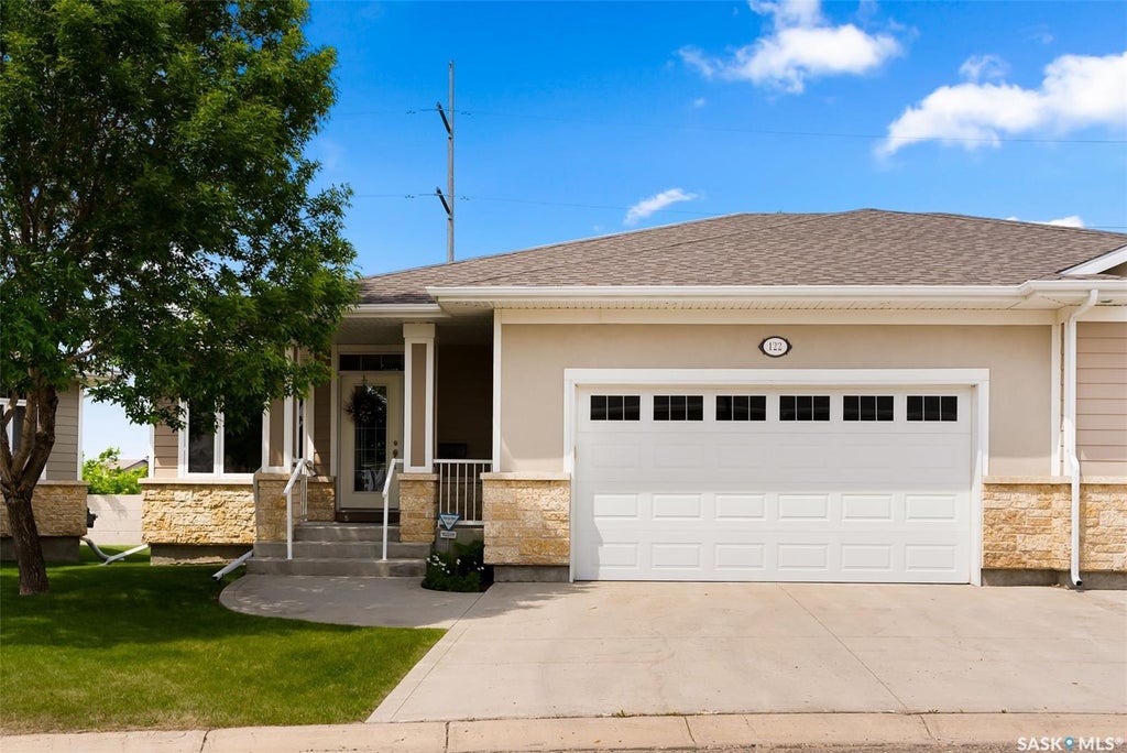 Desirable Westridge Homes built bungalow condo in Wintergreene Terrace in the sought after community of Albert Park. This unit has great street appeal plus a front verandah and maintenance free exterior with Tyndall accents. This west-facing unit features a thoughtfully designed open concept that beautifully integrates the warmth of a gas fireplace in the living room, expansive windows and a kitchen with a large eat up island and pantry creating an inviting atmosphere perfect for relaxation or entertaining. Warm rich colors and hardwood flooring flow throughout this space. Off the dining area garden doors lead to the large covered deck and green space beyond. There are 2 bedrooms up, the primary includes a walk in closet and ensuite. The 2nd bedroom has frosted French doors and would also make a perfect office. The 4 piece bathroom, main floor laundry and direct entry to the double attached fully insulated and dry-walled garage with mezzanine shelving completes the main level. The basement is partially finished and the portions are separated for a rec room, huge 3rd bedroom with glass doors and 2 windows, and utility space. Drywall, doors, door jams and insulation in the basement will stay. There is also RIP for a bathroom. Microwave is 4 yrs old, dishwasher is 3 yrs old and kitchen faucet was replaced 2025.