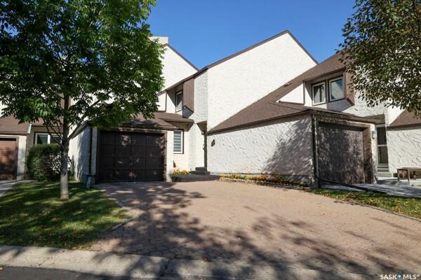 Location Location! This town home is in Wascana Estates and offers an opportunity to live across the street from Wascana Park, five blocks to the U of R, a five minute drive to downtown and minutes to multiple retail and entertainment possibilities, with easy access to all areas of the city. This home offers updated maple cabinetry to the kitchen. All the windows and patio door were just upgraded in 2023. The functional main level offers an open plan including kitchen with a eating area and direct entry to the attached garage, a 2 piece bathroom, dining room, and a step down to the spacious living room with patio doors out to your generous courtyard. The second level includes a massive primary bedroom with a large wall of closets and private access to the 5 piece bathroom. The second and third bedrooms have had the wall removed and currently are used as one large bedroom There is a folding partition wall in place but it would be easy to put it back to 2 separate bedrooms with both offering oversized closets. A convenient 2nd level laundry finish off this level of the home. The lower level is developed with an expansive family room, a den and utility room with lots of room for extra storage. Wascana Estates is very well appointed complex with an outdoor pool, an abundance of green space and a tennis court. A chance to live next to one of the largest urban parks in North America!...Properties like this do not come to market often and do not last long. set up your personal showing of this home today.