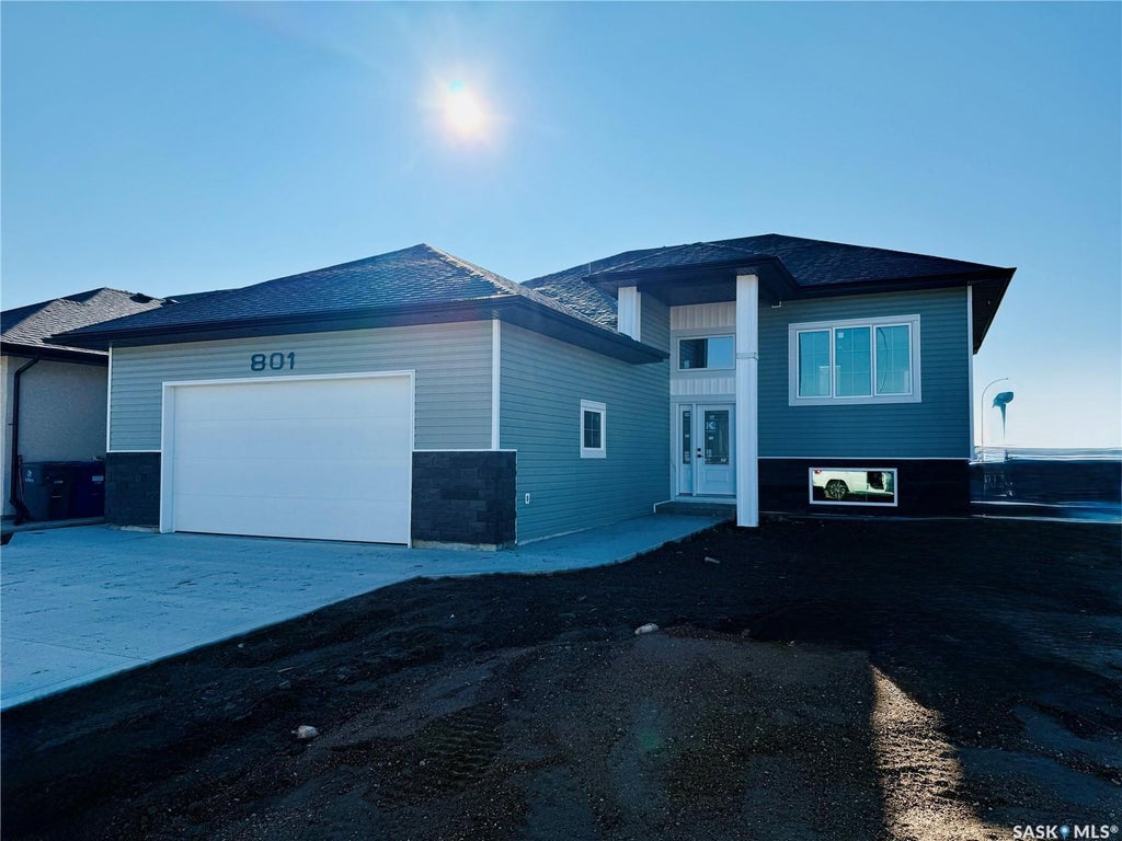 This stunning new 1,420 sq. ft. bi-level home in the City of Warman, built with care and precision with much to offer. This thoughtfully designed home offers a double concrete driveway, vinyl siding and stone work for a great street appeal. Step inside to an inviting open-concept layout featuring 9' ceilings, large windows, and an abundance of natural light. The modern kitchen is equipped with floor to ceiling cabinetry, quartz countertops, a spacious island, and plenty of storage—perfect for both everyday living and entertaining. The primary suite boasts a walk-in closet and a luxurious 5 piece ensuite. Completing the main floor are two additional bedrooms, a dedicated laundry room, and a 4-piece bathroom. Included you get a full set of appliances, driveway and a deck. Ideally situated on a corner lot with back alley access and north facing windows allowing an abundance of natural light. Comes with Blanket New Home Warranty for added peace of mind. Reach out today or contact your favourite agent for more details! Home is nearly complete. GST/PST included in purchase price, with rebates back to the builder. "Note pictures from a similar build, colours may vary"