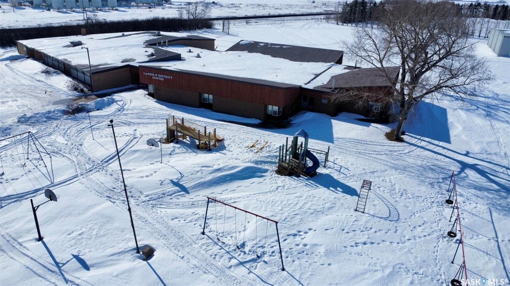 Unique Opportunity – Former Landis School For Sale This 26,000+ sq. ft. property in Landis, SK features two connected, concrete buildings on approximately 3 acres (to be subdivided). The first building (1963, 13,292 sq. ft.) includes a 46’ x 64’ gym with a new floor (2023), 16’ x 32’ stage, six classrooms, boys’ and girls’ changerooms and bathrooms, a canteen, storage room, and office. The second building (1976, 12,700 sq. ft.) offers seven classrooms, a 33’ x 51’ library used as a community meeting room, a staff room, office, storage rooms, and additional bathrooms. Current tenants include the Landis Fitness Centre and Wheatland Library, while the gym is used twice a week for pickleball. Recent improvements include newer furnaces and some updated windows. Outside, there’s a playground adjacent to the building. Located 30 km from Wilkie and 40 km from Biggar, this property is easily accessible and offers endless potential for a community hub, business venture, event space, or redevelopment project. Asking Price: $150,000