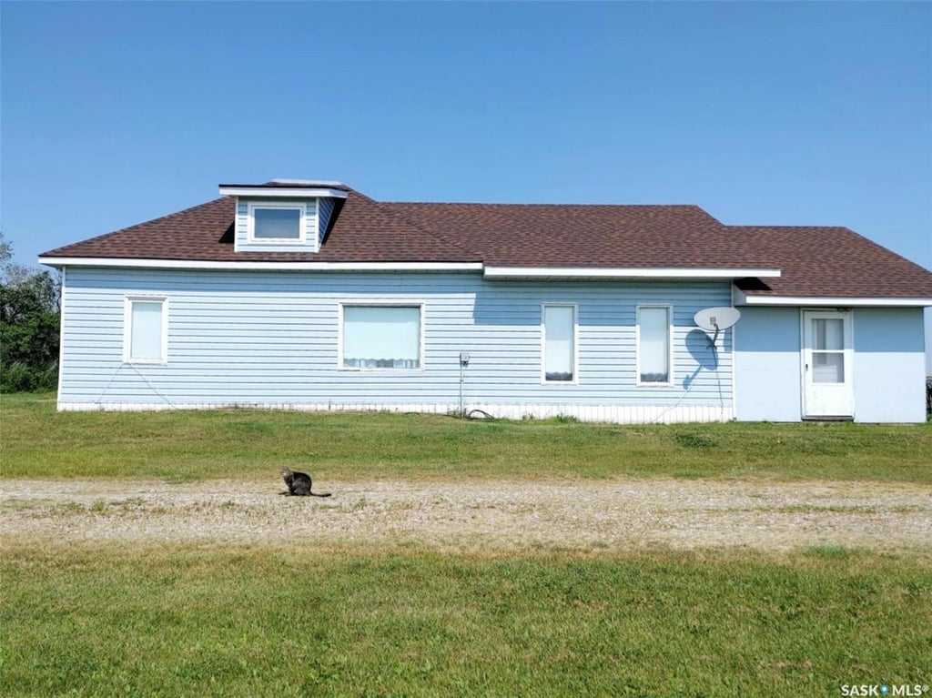Cox Acreage, a mere 4.5 miles North of Esterhazy, with 10 acres and a 2 bedroom, 2 bathroom home. An affordable option to get into the acreage lifestyle. Updated propane furnace, water heater, septic tank, 3000 gallon fiberglass water tank and main power service. The sunroom is an additional area that could be insulated and incorporated into the home's square footage. There is an open flow between the dining room, kitchen with pantry, living room and den area. The den area could be built into a nursery or third bedroom. The kitchen features oak cabinetry, an island, a pantry and stainless steel fridge, built in dishwasher and smooth top range. The main level bedroom features a full wall of closets and is right beside the 3 piece bathroom with shower. The second, full bathroom houses the laundry room with washer and dryer, water heater, bathtub with shower, toilet and vanity. The second level is a loft style bedroom with loads of closet space and dormer window. There is a well on property that is plumbed to the house, but requires repair, dugout on edge of property. Older machine shed that would require repairs and a shed add to the storage possibilities.